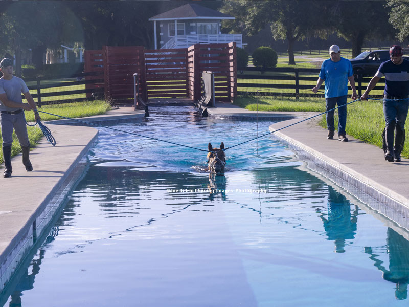 Our state of the art swimming pool was built after a great deal of research. It allows a break from the track while continuing to build muscle and lung capacity. Each horse is accompanied by at least 2 experienced men.